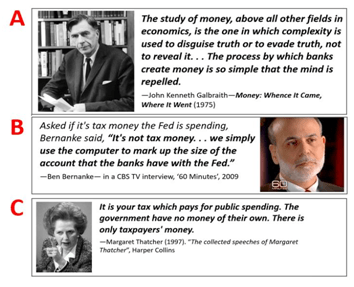 As she says on p31: “Once you’re able to see that the government’s ability to spend doesn”t revolve around the taxpayer dollar, the whole fiscal paradigm shifts. Or, as that journalist put it, “Once you get it, you will never see things the same way again”.