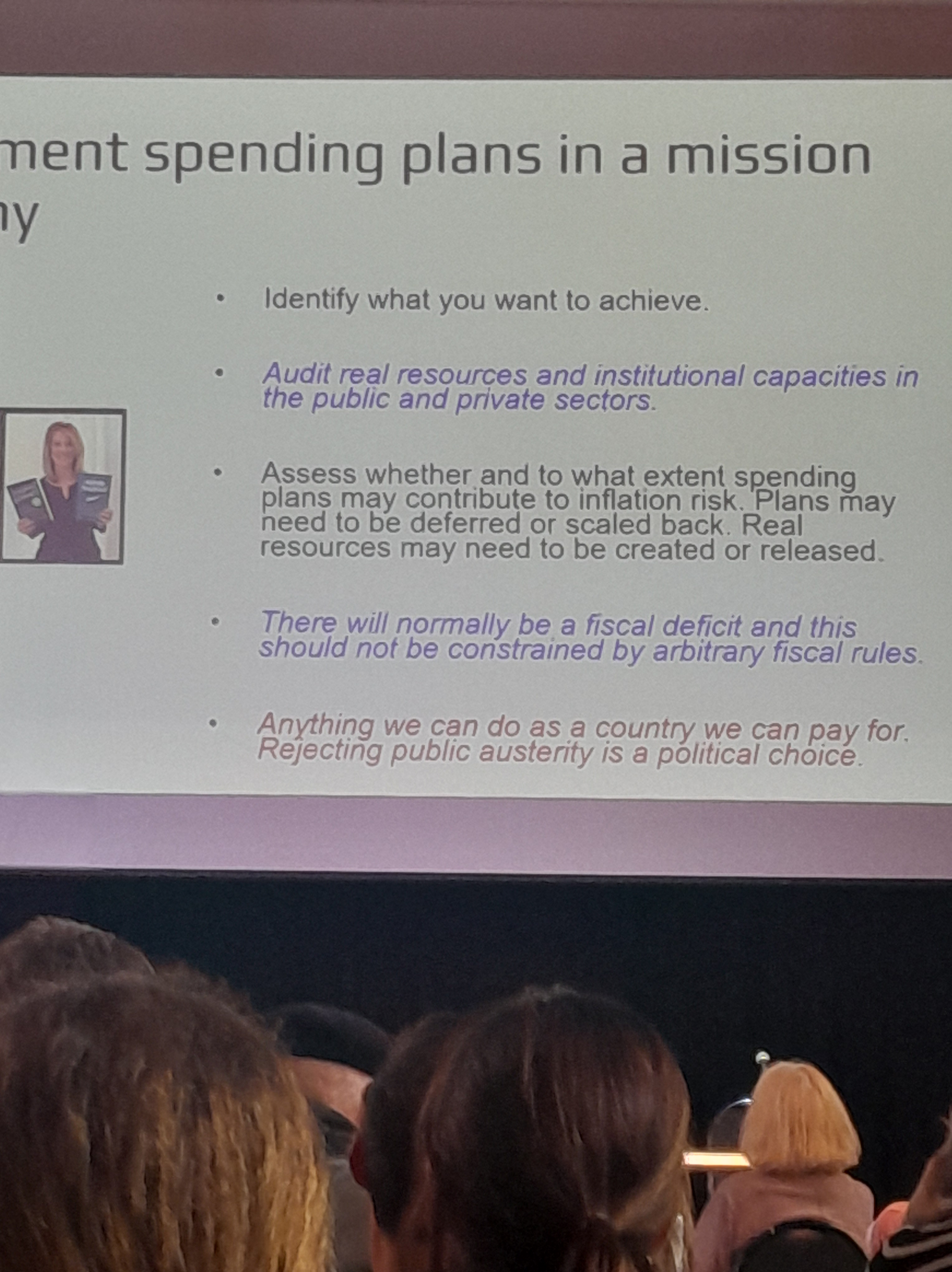 There was a strong attendance, sold out at the venue on the Friday, plus online attendance. Attendees were of a wide range of ages, from student-y to a handful of likely-septuagenarians like myself. Some were new to the lens of modern monetary understanding, but seemed to be very interested. General enthusiasm was high, and one of the panel speakers declared that once the conditioning of the last 45 years is overcome, there is a very fertile ground out there in society for a different approach. to economic public policy.
